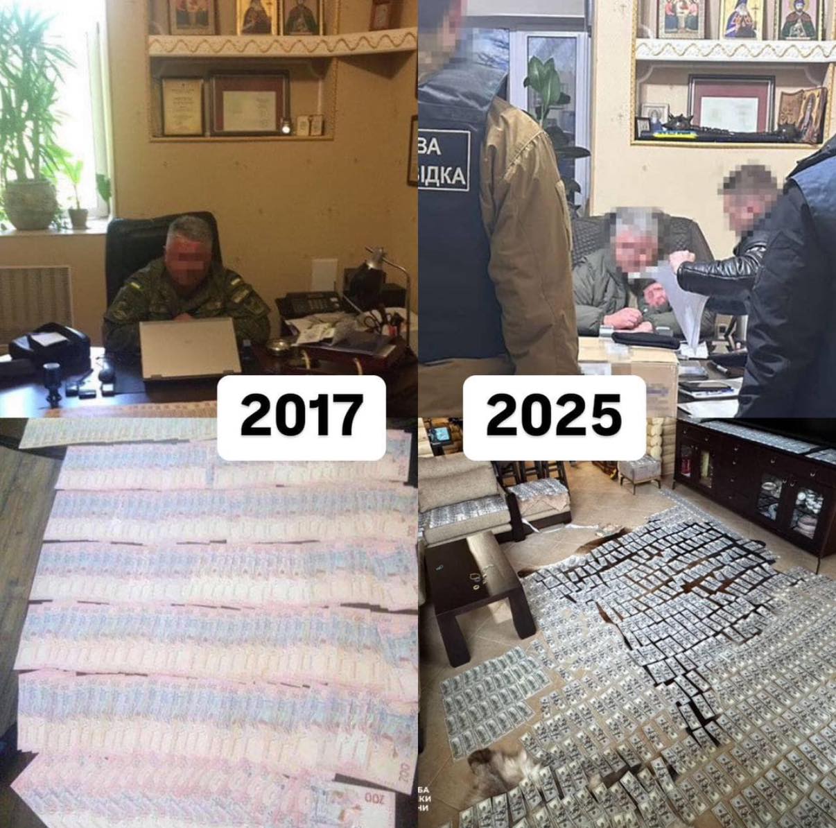 "На столе куча баксов, во дворе куча автомобилей, но что-то никто его не крутит, публично не показывает, что мы боремся со взяточниками. Пофоткали купюры и поехали себе спокойненько. Норм, чо".