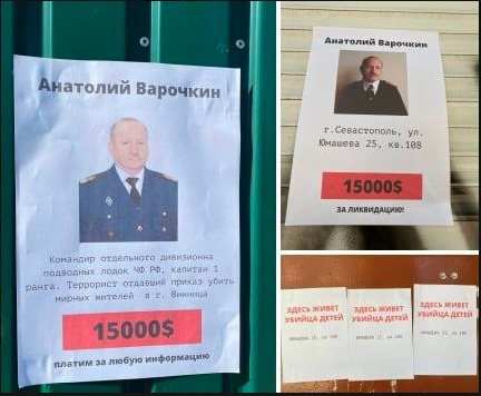 Так, на территории временно оккупированного крымского полуострова разыскивают командира отдельного дивизиона подводных лодок флота РФ Анатолия Варочкина. Именно он отдал приказ обстрелять Винницу крылатыми ракетами. За голову этого преступника народные мстители готовы заплатить 15 тысяч долларов.