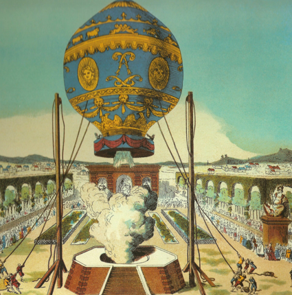 Во второй раз 19 октября 1783 года шар поднялся в воздух уже с пассажирами. На борту находились баран, петух и утка. А после модернизации 21 ноября в воздух впервые поднялись двое мужчин. Шар пролетел над Парижем, совершив первый в истории полет людей.