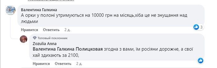 "А орки в плену содержатся на 10 000 гривен в месяц, разве это не издевательство над людьми", "Согласна с вами, им россияне дороже, а свои пусть подыхают за 2 100", "Была 2 511, а стала 2 520. А где повышение? Это пенсия по утрате кормильца моим детям. Спасибо вам большое за 8,4 грн", - пишут украинцы.