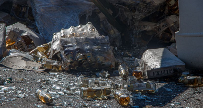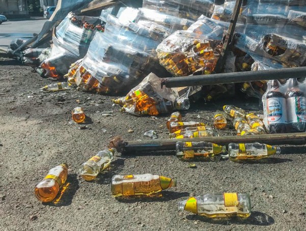 Авария произошла на проспекте Нигояна, на месте событий разлился алкоголь и лежат разбитые бутылки. По улице раздается сильный запах, движение на данном участке дороги не затруднено. На место происшествие прибыли правоохранители.