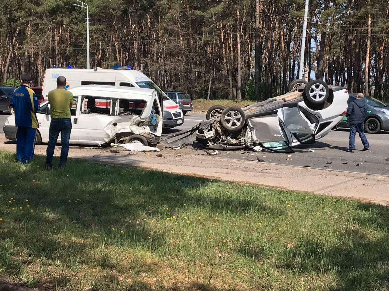 В пятницу, 1 мая утром, в Харькове на Журавлевке на улице Героев Труда произошло масштабное ДТП, один из автомобилей перевернулся.