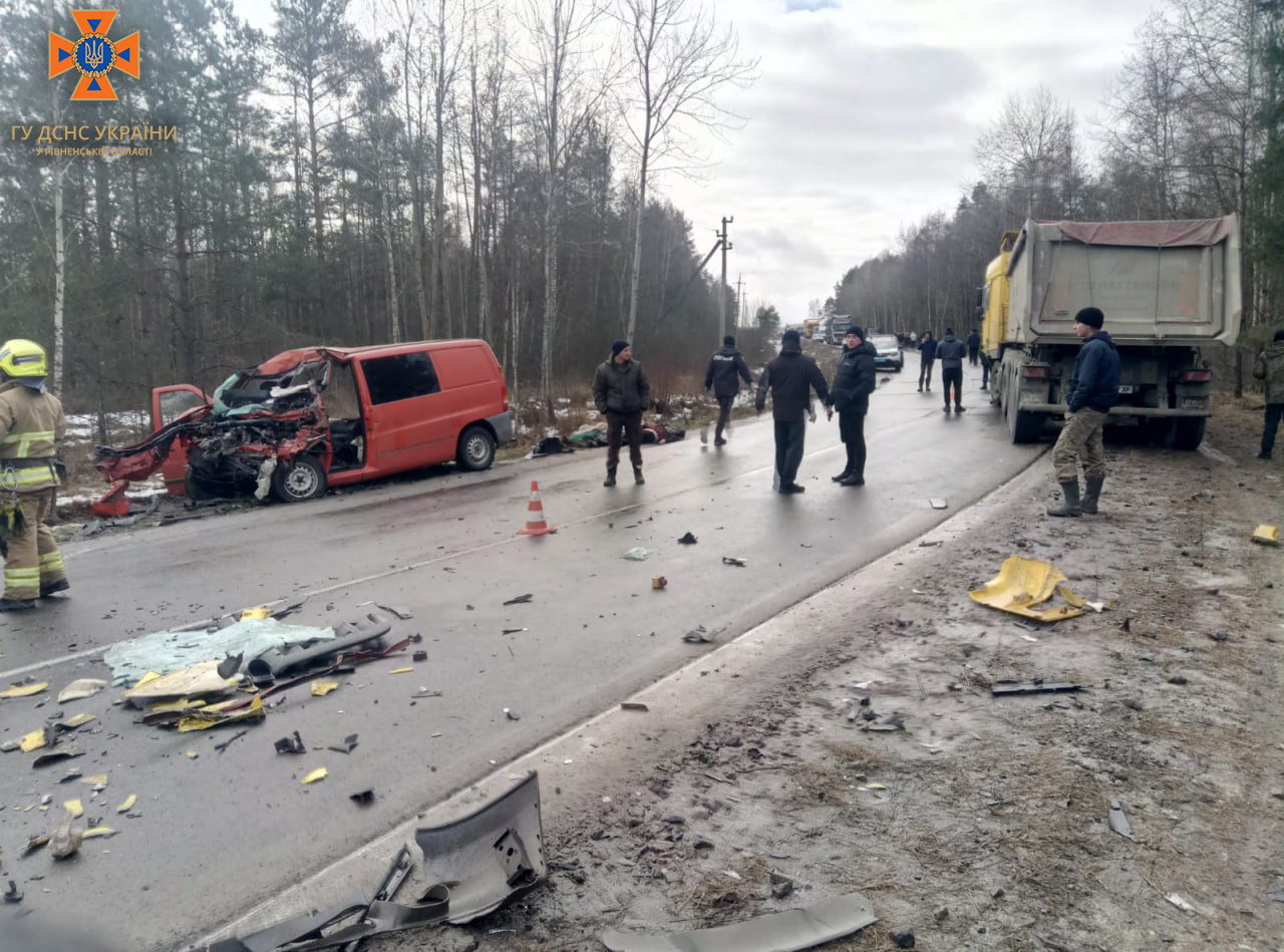 "Водитель автомобиля Mercedes-Benz Vito, 50-летний житель села Витковичи, выехал на полосу встречного движения, где столкнулся с грузовиком DAF под управлением 30-летнего жителя Клесова. В результате ДТП на месте происшествия погибли водитель микроавтобуса и две пассажирки - 47-летняя житель села Витковичи и 43-летняя жительница села Богуши. Кроме того, с тяжелыми травмами госпитализировали еще двух пассажиров: 37-летнюю жительницу села Богуши и ее 44-летнего односельчанина. Последний, несмотря на оказанную медиками помощь, скончался в больнице" - заявили в полиции и добавили, что водитель грузовика на момент ДТП был трезв.