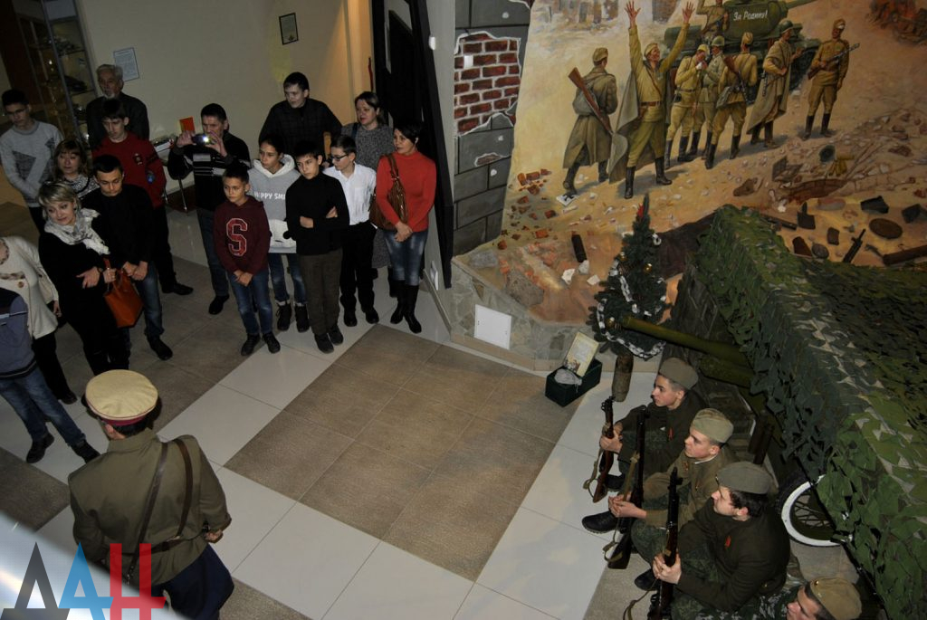 Сегодня, 5 января, в подконтрольном боевикам городе ДНР Донецк сотрудники музея Великой Отечественной войны провели для детей театрализованную экскурсию "Новый год на фронте", реконструировав обстановку праздника в партизанском отряде и военном госпитале.