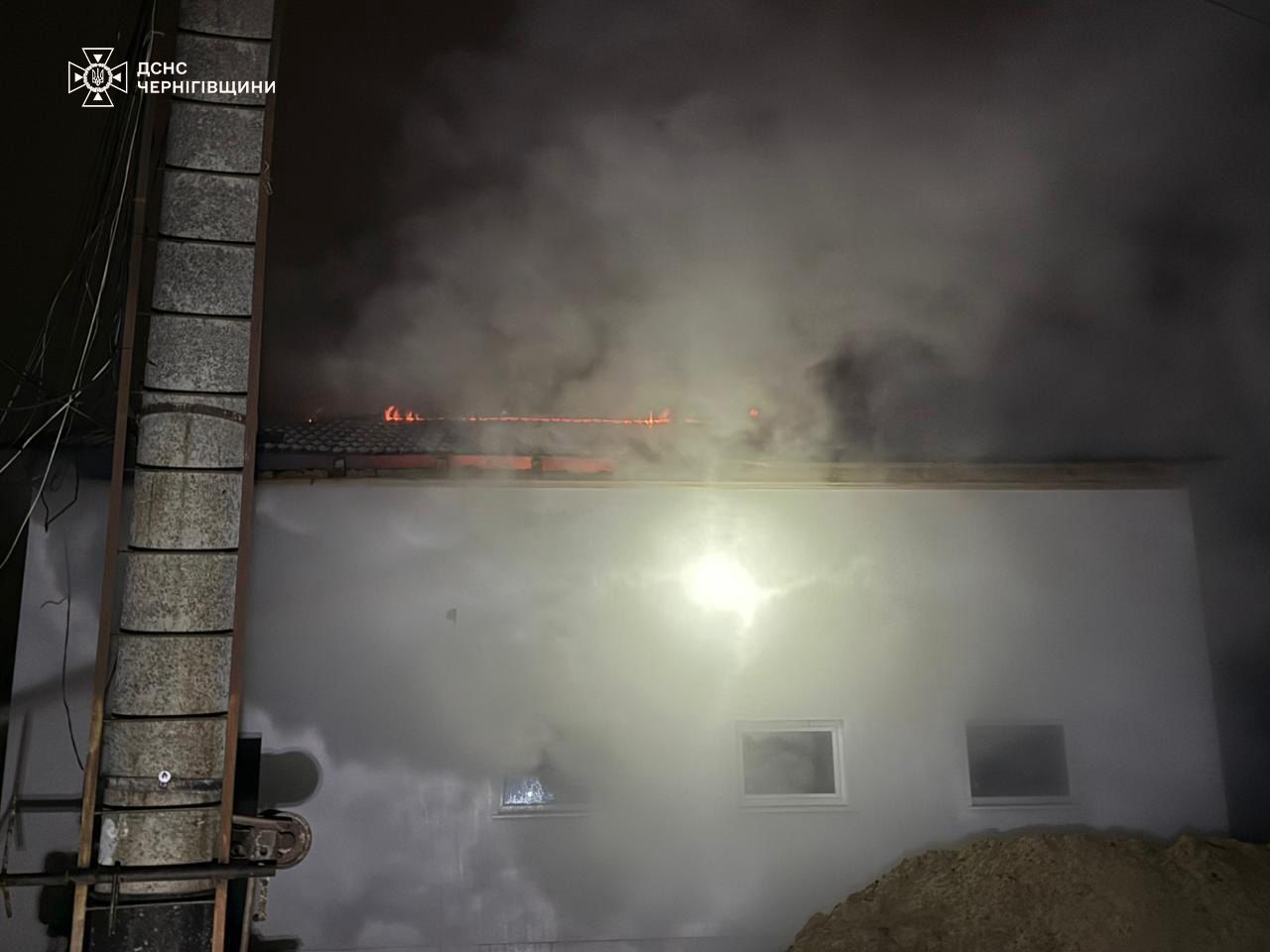 В сообщении отмечается, что российские войска нанесли удар по объекту ГСЧС в Семеновке, в результате чего загорелась крыша админздания.