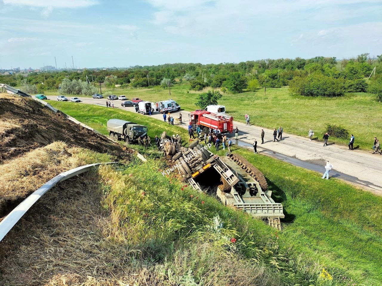 Возле села Ишунь Красноперекопского района оккупированного Крыма перевернулся трал, который перевозил военную технику для войны в Украине.