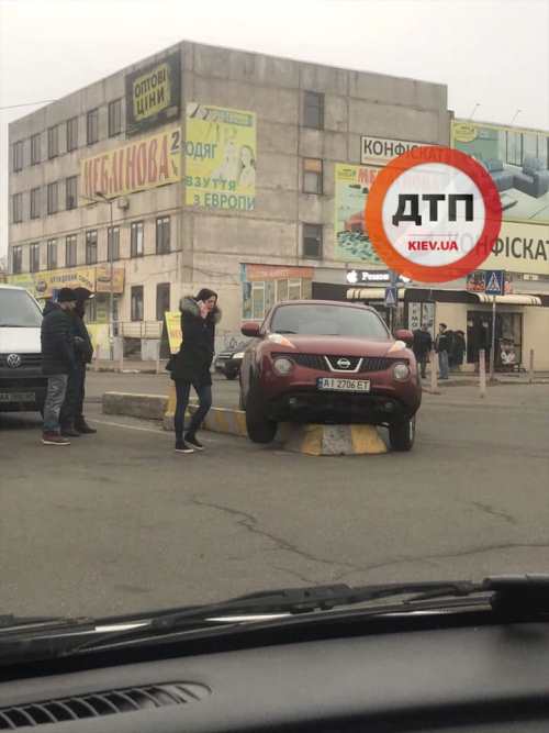 В сети появилось фото, как в Киеве девушка припарковала свой внедорожник таким образом, что он разместился днищем прямо на бордюр.