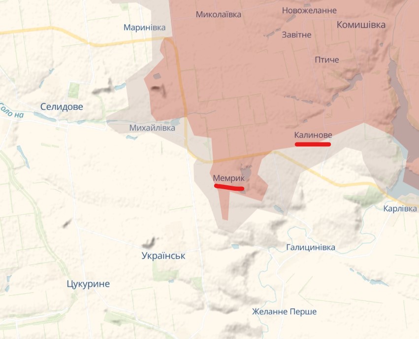 Российская оккупационная армия захватила села Мемрик и Калиновое Покровского района Донецкой области.
