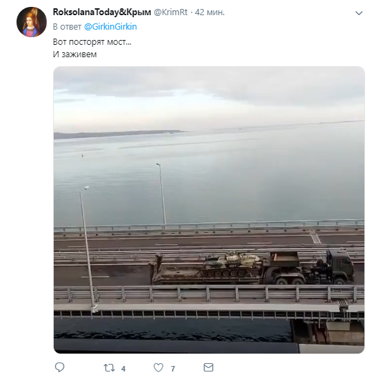 Ранее сообщалось, что 2 ноября в Крыму на Керченском мосту заметили колонну военной техники, направляющейся на полуостров.