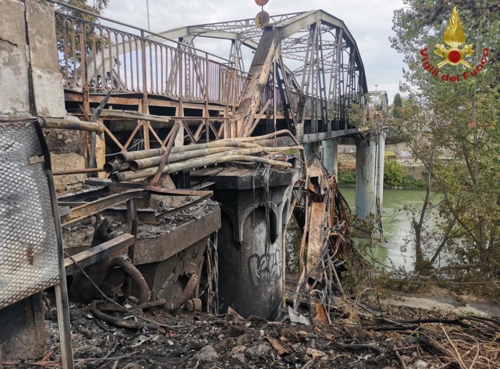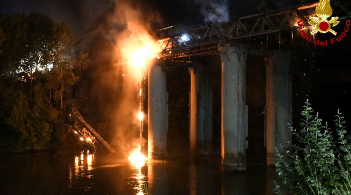 В Риме сильный пожар накануне выборов следующего мэра повредил один из самых старых мостов - "Железный мост" 19-го века. Часть моста обрушилась в реку Тибр.