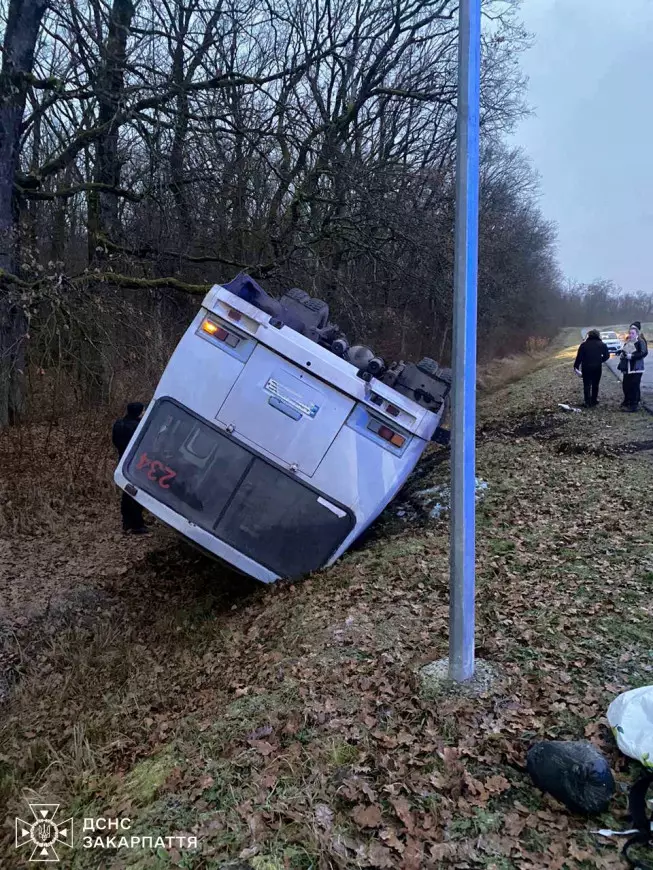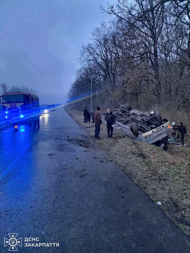 ДТП произошло между селами Залужье и Макарово Мукачевского района. По предварительным данным, пассажирский автобус ПАЗ-3205, следовавший по маршруту "Мукачево – Барбово", съехал с дороги в кювет и опрокинулся вверх колесами.