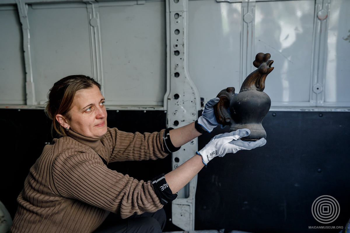 "С сегодняшнего дня она находится в фондах Национального музея Революции Достоинства. Вместе со шкафом передан декоративный керамический петушок, который выстоял при взрыве рашистской авиабомбы", - сказано в сообщении.