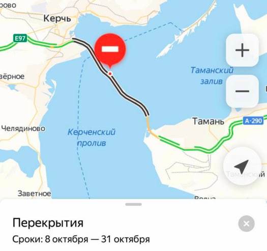 Пресс-секретарь президента РФ Дмитрий Песков сообщил, что российский диктатор Владимир Путин поручил создать правительственную комиссию в связи со чрезвычайной ситуацией на мосту. Он заявил, что пока неизвестно сроки по восстановлению моста. Однако в "Яндекс Картах" уже появилась дата окончания ремонтных работ по перекрытию моста - до 31 октября.