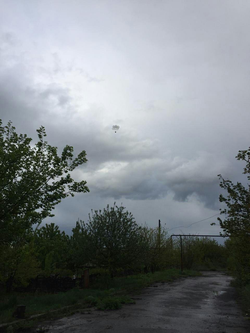 На кадрах можно увидеть, что украинские защитники привязали пачку листовок к воздушным шарам и отправили ее на оккупированную территорию.