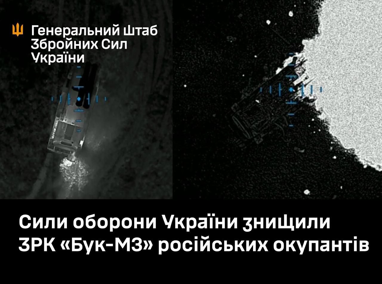 "В ночь на 21 октября подразделения Сил беспилотных систем Вооруженных Сил Украины во взаимодействии с другими составляющими Сил обороны, в рамках выполнения задач по выявлению и уничтожению средств противовоздушной обороны противника, поразили зенитный ракетный комплекс "Бук-М3"".