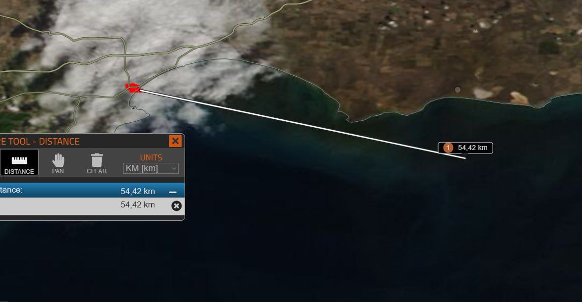 Кроме того, отмечали, что ветер повернул в сторону моря, а длина шлейфа составила ориентировочно 54 км: "Шлейф не густой, вероятно, горят бензин или керосин".
