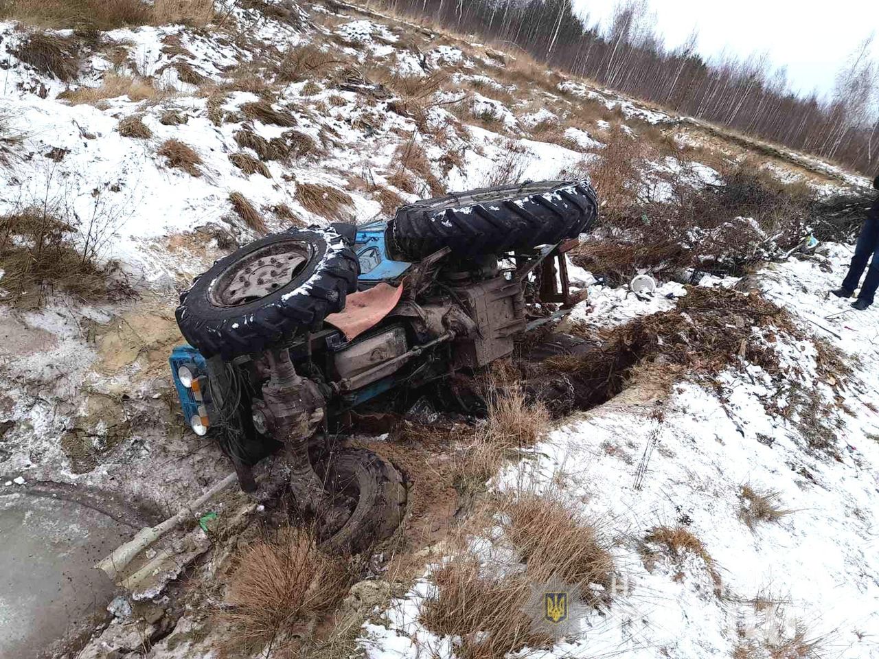 Молодой человек не справился с управлением и перевернулся, вскочив в яму. Сам не травмировался, поэтому дальше отправился пешком. Трактор бросил на месте.