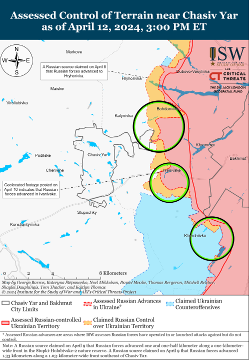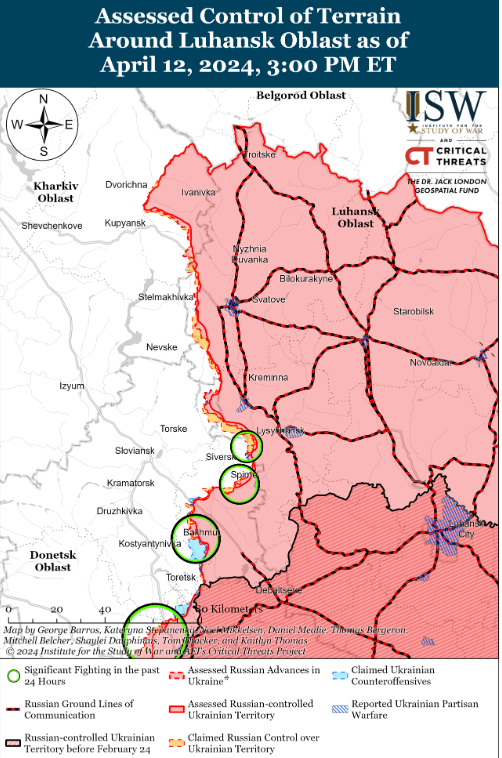 Об этом говорится в свежем отчете Института изучения войны ISW от 12 апреля.