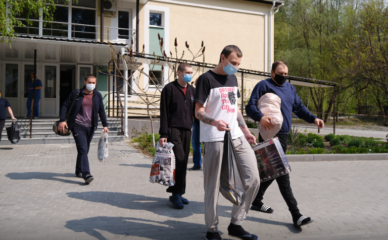 Освобожденные 16 апреля из плена боевиков украинские узники пробыли две недели в обсервации в Святогорске и теперь отправились на реабилитацию.