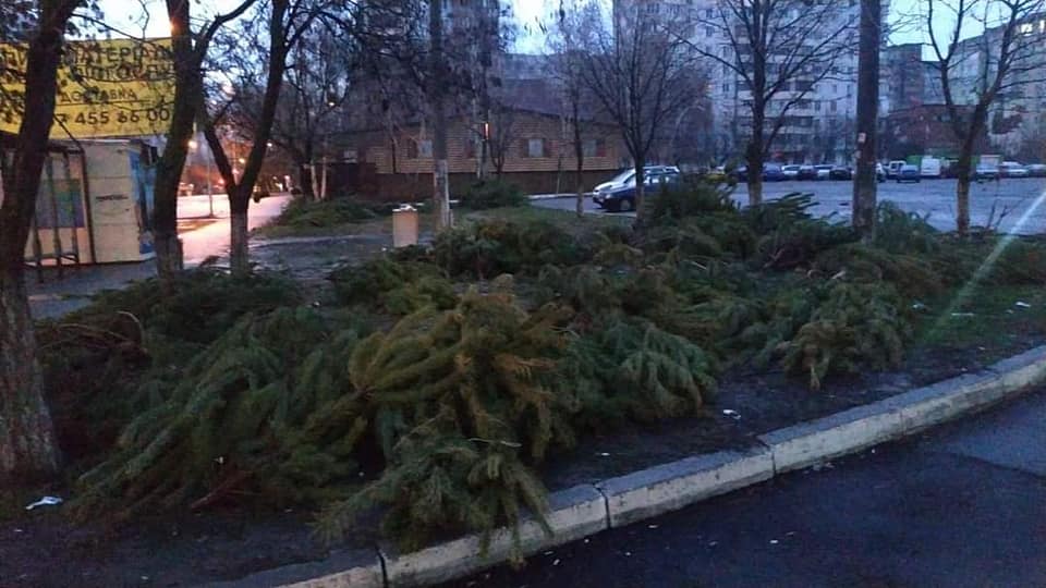 В Одессе, утром 1 января, прохожие обнаружили настоящее "кладбище" из сотен елок, которое оставили после себя торговцы живыми новогодними деревьями. Оказалось, что предварительно они облили деревца соляркой, чтобы те никому не достались бесплатно.