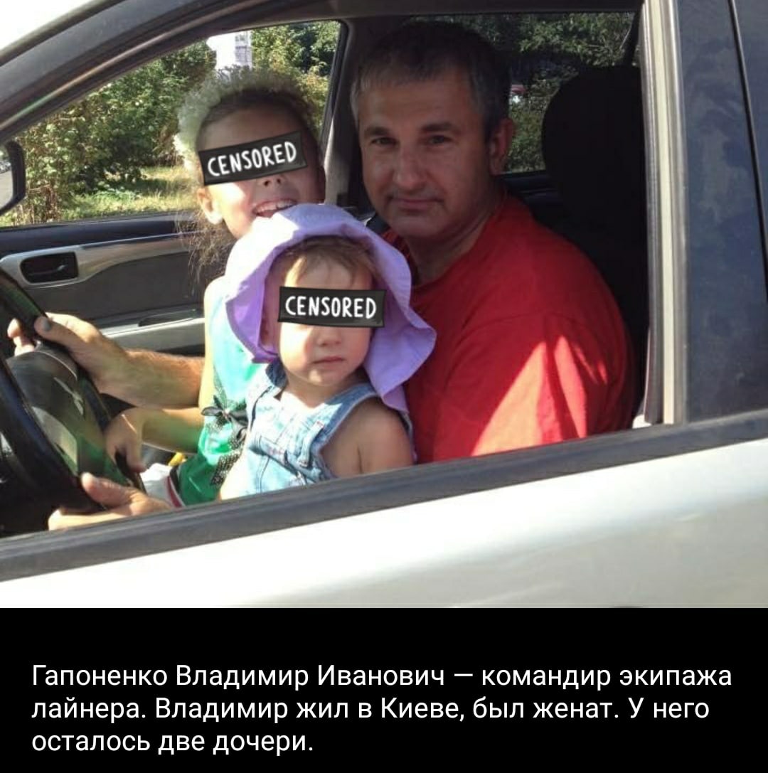Членами экипажа оказались украинцы с довольно большим опытом полетов. Помимо этого, известно, что Владимир Гапоненко, который был командиром экипажа, жил в Киеве. Он был женат. Без отца остались двое дочерей.