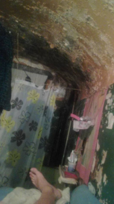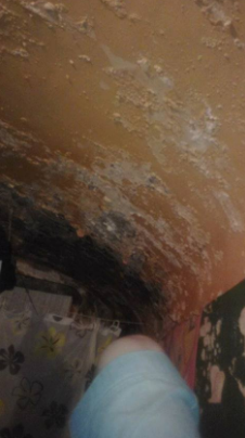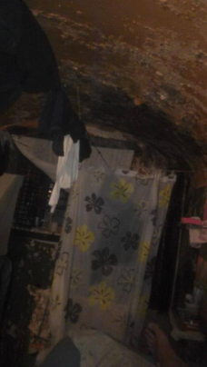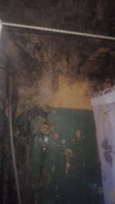 На фото можно увидеть облезлые стены, изъеденные грибком, по которым стекает вода.