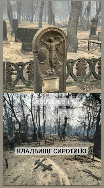 В сети показали апокалиптические кадры с кладбищ охваченных страшным пожаром сел под Северодонецком.