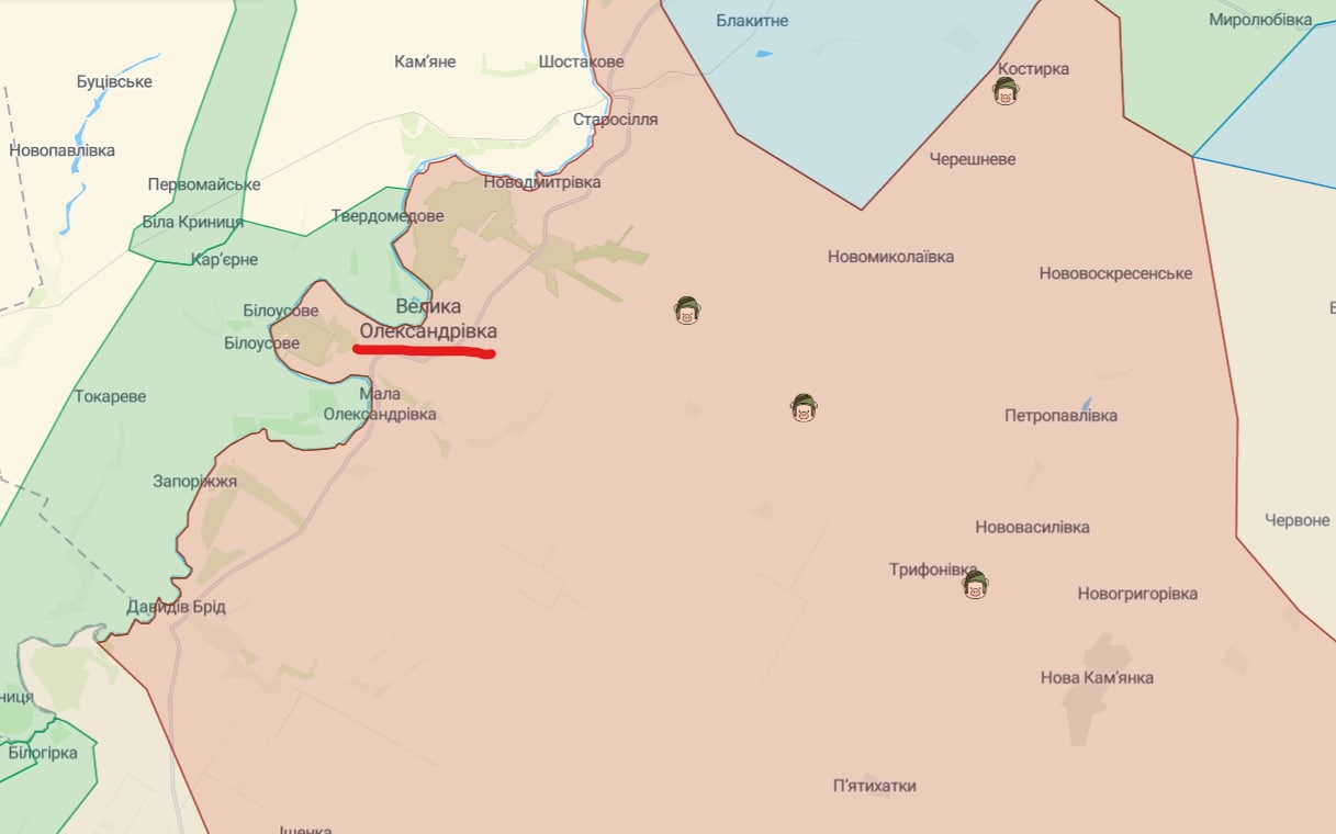 Украинские воины очистили от оккупантов также поселок городского типа Великая Александровка. Местные жители подняли там флаг Украины.