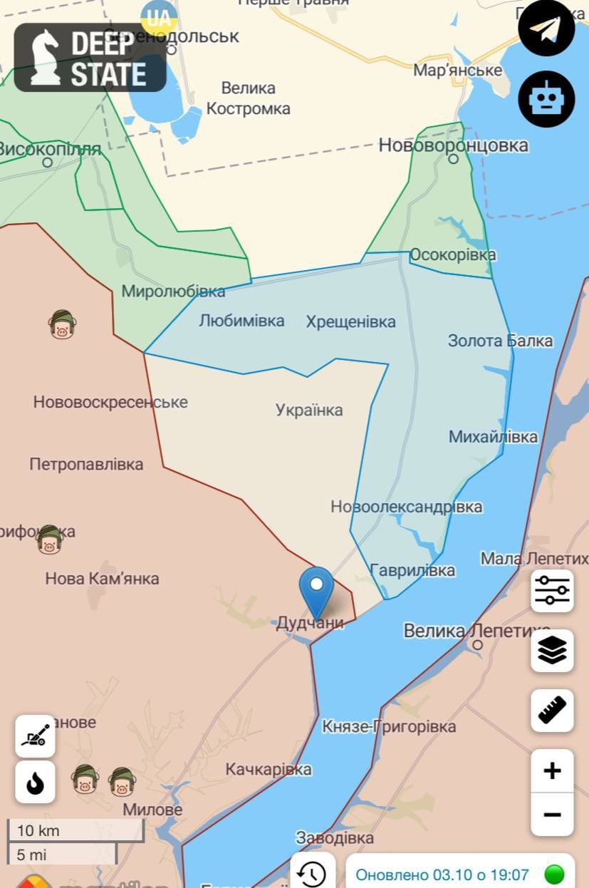 Кроме того, стало известно об освобождении Дудчан Нововоронцовского района, расположенного на берегу Каховского водохранилища.