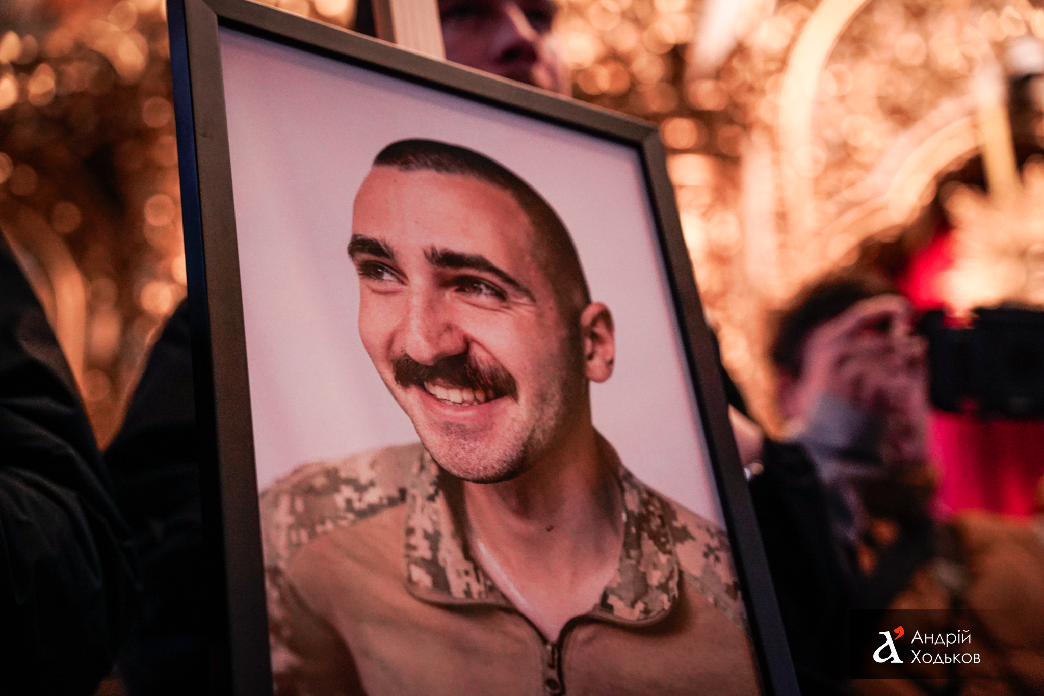Почтить память павшего защитника собрались сотни людей, включая его коллег и боевых собратьев. Сначала траурная церемония прошла в Михайловском Златоверхом соборе, а затем скорбная процессия переместилась на Майдан Незалежности.