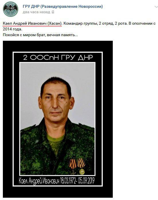 В рядах боевиков на одного наемника стало меньше. 5 октября скончался Андрей Каел по прозвищу "Хасан".