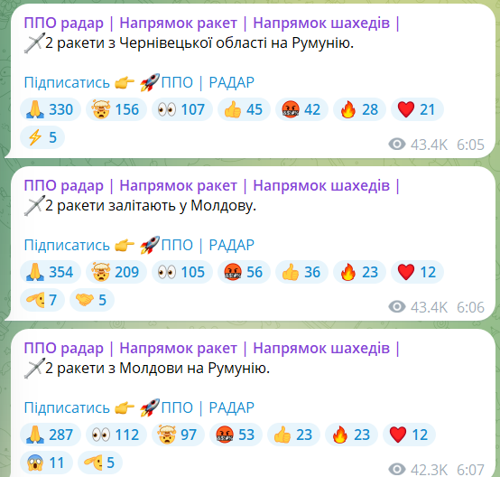 Атака продолжалась в течение ночи, и, по данным мониторинговых каналов, группы ударных дронов типа "Шахед", а также ракеты, двигались курсом на запад страны. В частности, фиксировалось движение целей в направлении Хмельницкой, Винницкой, Ивано-Франковской, Тернопольской и Черновицкой областей. Некоторые сообщения даже указывали на возможное пересечение ракетами воздушного пространства Молдовы и Румынии.