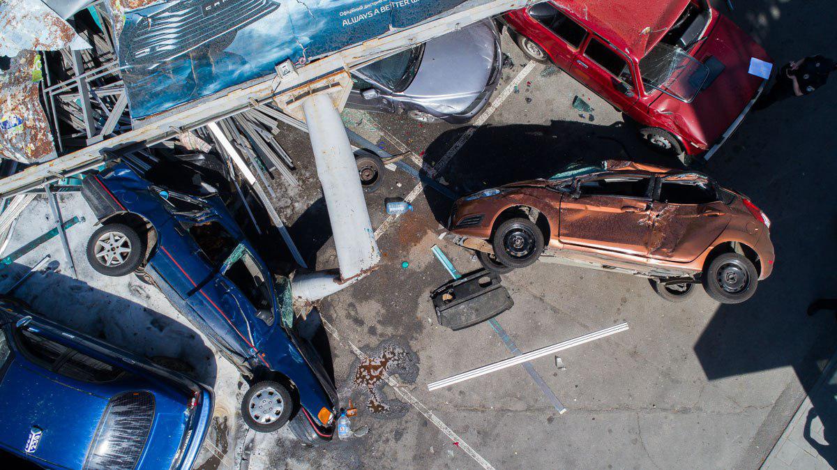 На изображениях можно оценить масштаб происшедшего. Напомним, что 4 мая на улице Космической неуправляемый грузовик DAF заехал на парковку супермаркета, сметая все на своем пути.