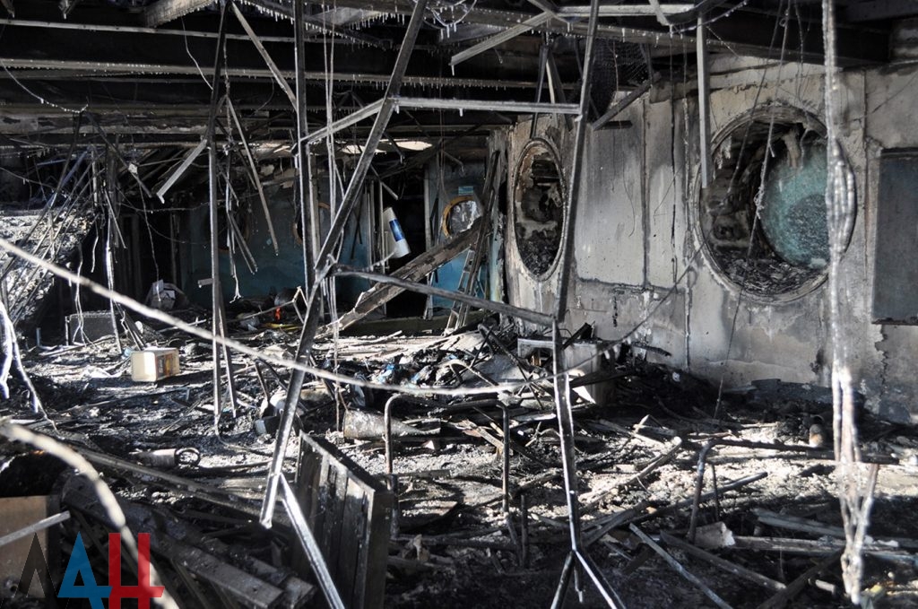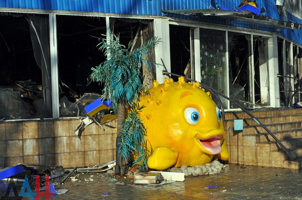В сети появились новые фотографии последствий ночного пожара в бывшем дельфинарии "Немо" в оккупированном боевиками Донецке.