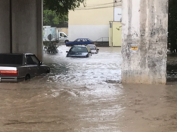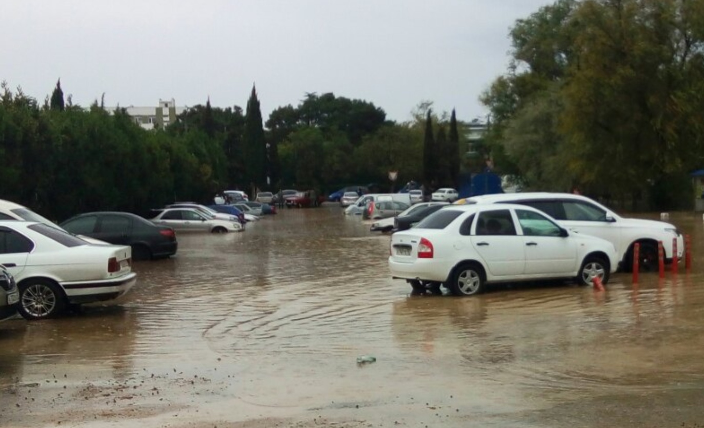 В Севастополе на улицах города тонули автомобили.