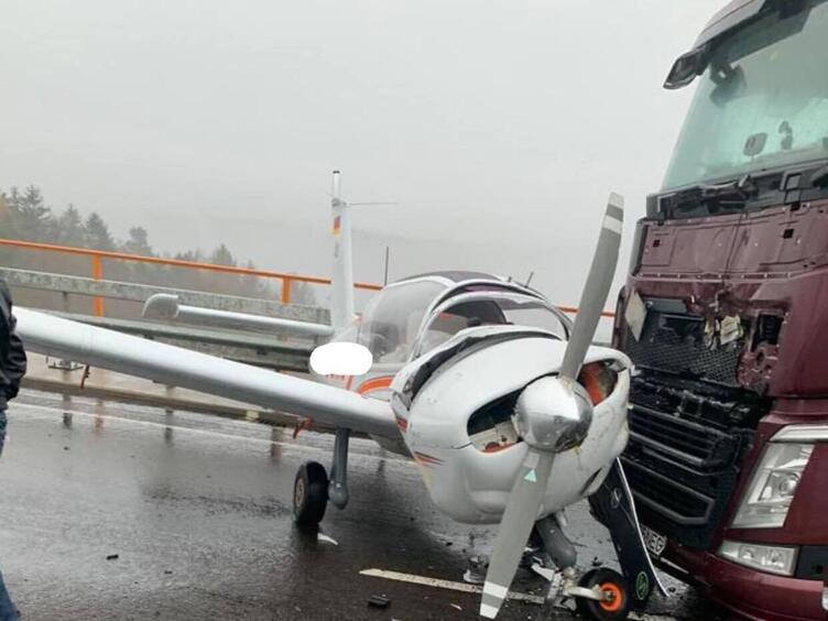 В Германии одномоторный самолет из-за отказа двигателя приземлился на мост, в результате чего произошло столкновение с грузовиком.