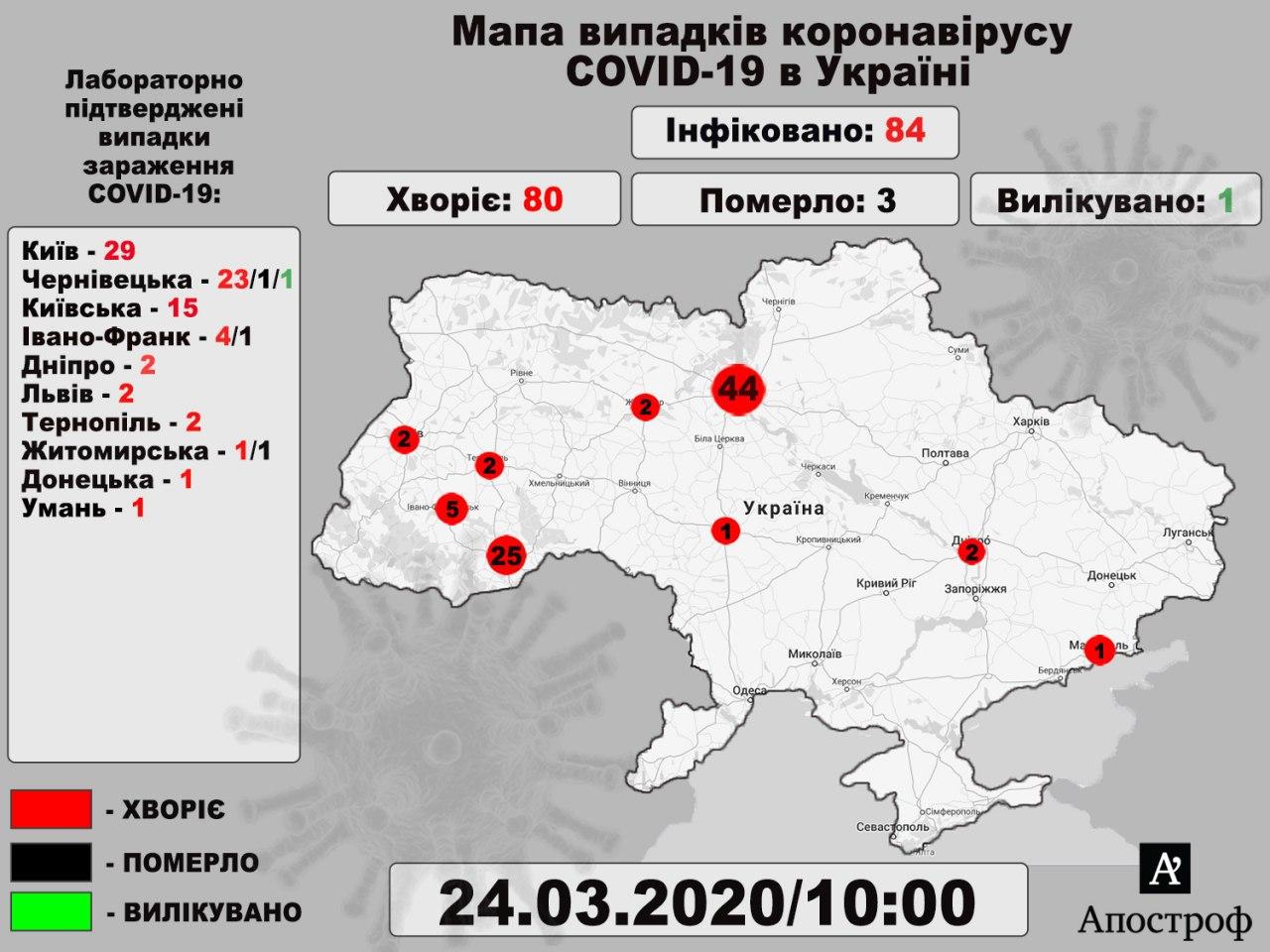 Так, 23 марта 10 новых случаев были зафиксированы в Киевской области, а еще один - в Тернопольской области.