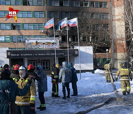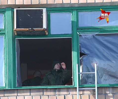 В помещениях на втором и третьем этаже выбиты окна, стены и потолок черные. Также на фото видно, что возле здания находятся пожарные. Кроме этого, на месте происшествия находятся люди в военной форме, но нельзя сказать, являются ли они экспертами на месте взрыва или просто рядовыми боевиками.