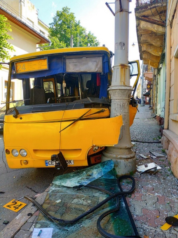 В центре Черновцов на улице Шолом-Алейхема маршрутка врезалась в столб.