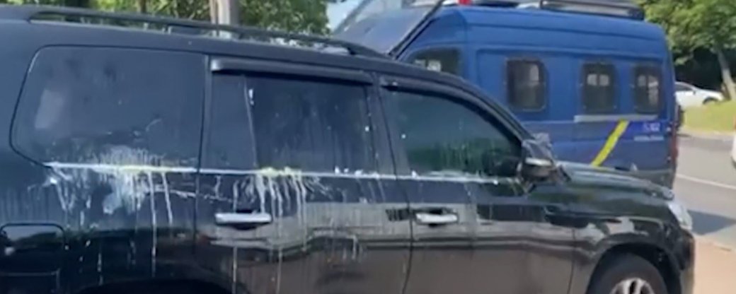 В Чернигове на Болдиных горах, куда народный депутат Вадим Рабинович 18 июня приехал положить цветы к Вечному огню, его автомобиль забросали яйцами.