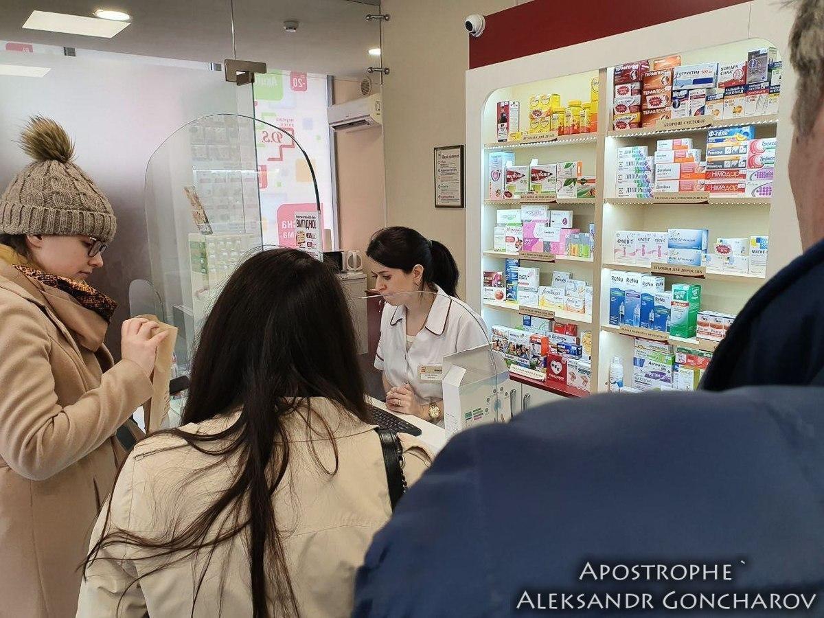 Как сообщает корреспондент "Апострофа" Александр Гончаров, масок нет в целых сетях аптек. Также в аптеках начали активно раскупать антисептики.