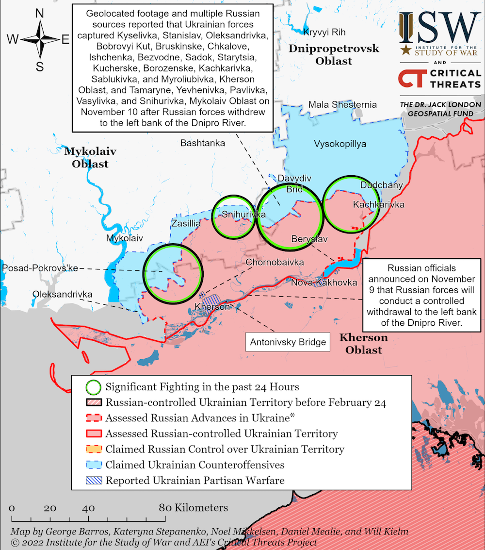 Об этом говорится в отчете Института изучения войны (ISW) состоянием на вечер 10 ноября.