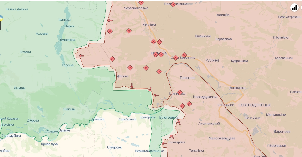 На Лиманском направлении враг совершил безуспешные наступательные действия в районах Дибровы и Белогоровки Луганской области и Серебрянки Донецкой области. Нанес авиационные удары возле Новоегоровки и Белогоровки Луганской области и Северска - Донецкой.