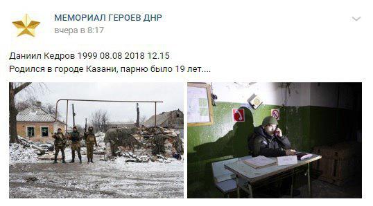 Данные о погибшем опубликовал паблик "МЕМОРИАЛ ГЕРОЕВ ДНР" в запрещенной в Украине соцсети "ВКонтакте".
