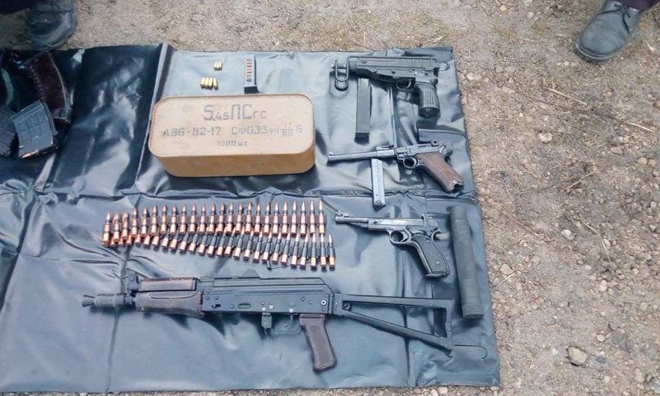 "Оперативники спецслужбы обнаружили схрон в гараже одного из кооперативов в Мариуполе. Правоохранители изъяли из тайника специзделие - пистолет-пулемет для бесшумного огня российского производства, автомат Калашникова, пистолет Марголина, пистолет Люгер П38, два ручных противотанковых гранатомета РПГ-26, три тысячи патронов калибра 5,45 мм, тысячу шестьсот патронов калибра 9 мм, десять гранат РГД-5 и Ф-1 с запалами к ним, мину ПОМ-2Р, четыре килограмма пластида и устройство дистанционного подрыва", - говорится в сообщении.