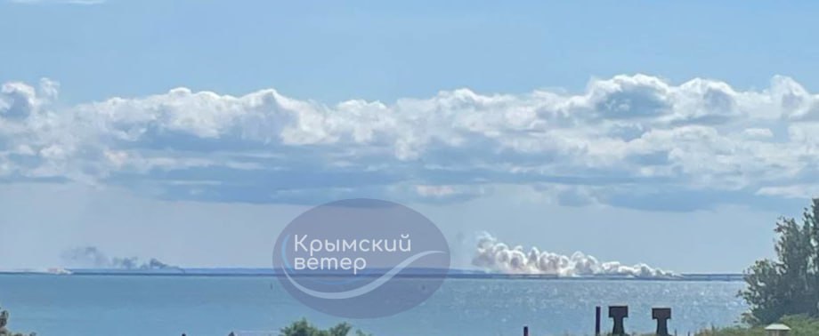В районе Керчи в оккупированном Крыму 12 августа снова слышны взрывы. Движение на Крымском мосту перекрыто спустя полчаса после возобновления, он в дыму.