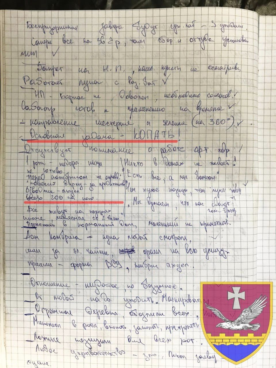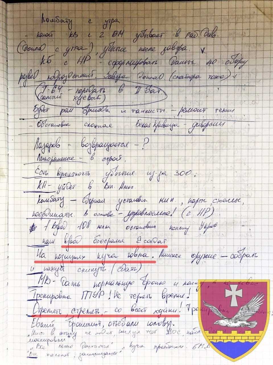 Командование не уточняет, на каком именно направлении фронта был обнаружен личный блокнот.