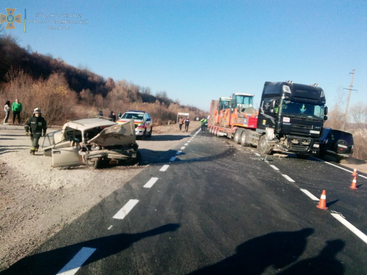 Спасатели получили сообщение о том, что на автодороге Р-21 "Долина-Хуст" столкнулись легковой автомобиль и грузовик DAF.