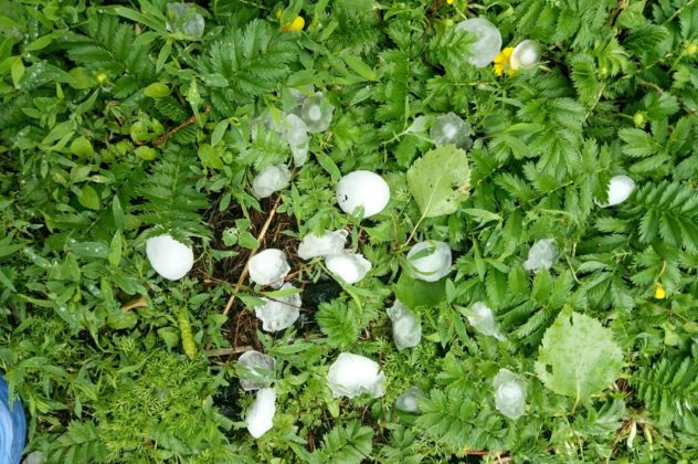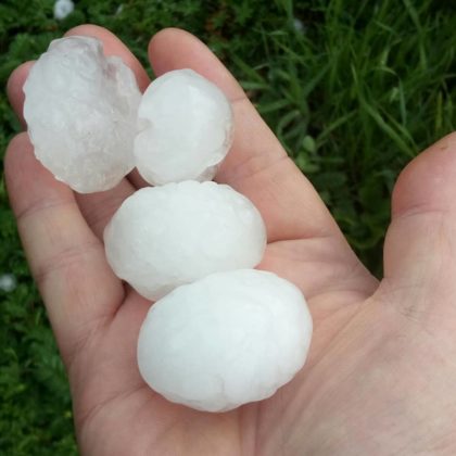 На опубликованных снимках видно, что градины едва помещаются в руке.