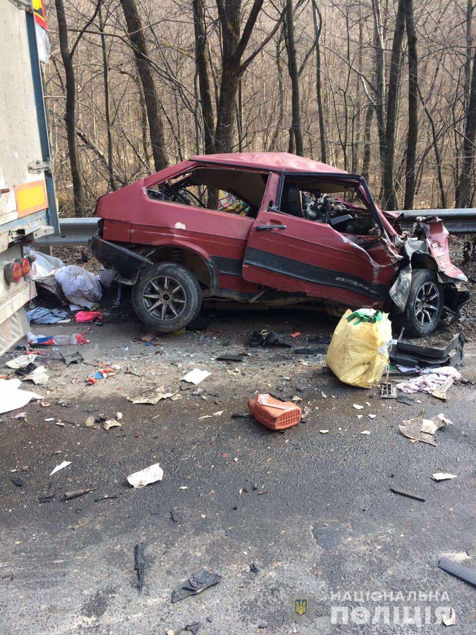 Как установили полицейские, которые работали на месте аварии, водитель легковушки, по непонятным причинам выехал на встречную полосу, где и столкнулся с грузовиком "DAF". За рулем крупногабаритного транспорта с полуприцепом был 44-летний житель Тернопольщины, он в аварии не пострадал.